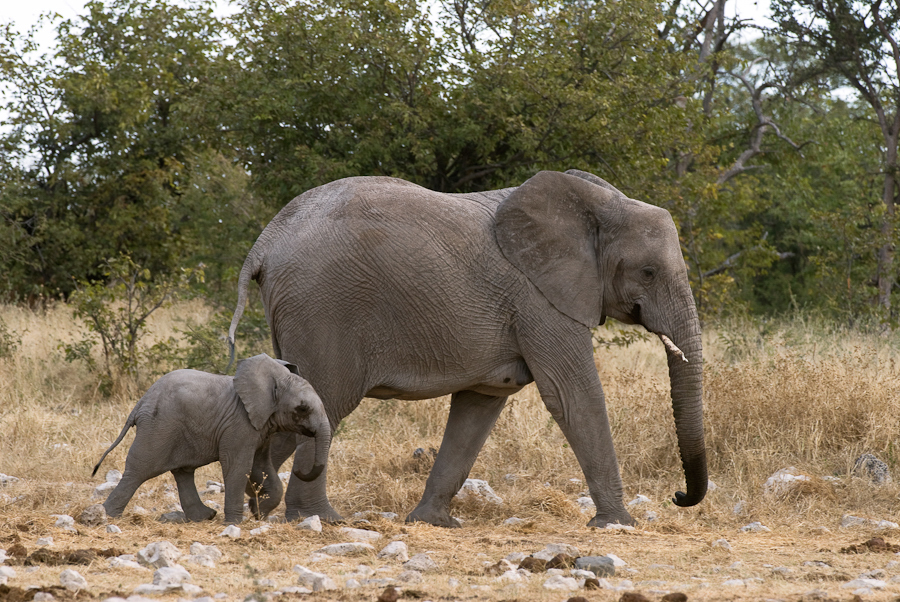 Elefant & Spitzmaulnashorn, Etosha