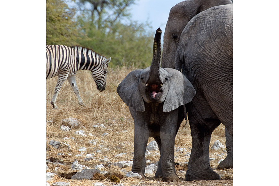 Junger Elefant am Wasserloch, Etosha